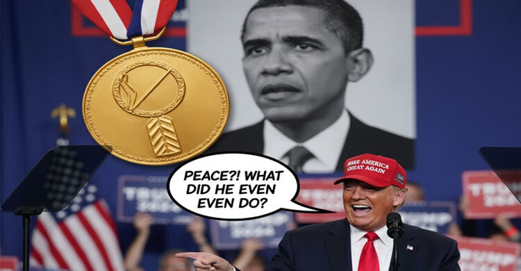 ট্রাম্প বলেন, ওবামা কিছুই করেননি, অথচ নোবেল পেয়ে গেলেন। একেবারে কিছু না করেই, শুধু আমাদের দেশ ধ্বংস করার জন্য।