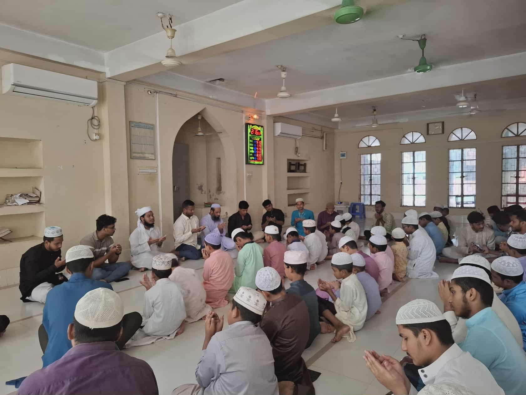 শুক্রবার (১৭ অক্টোবর) বাদ জুম্মা বিশ্ববিদ্যালয়ের উত্তর মোড়ে জামিয়া মোহাম্মদিয়া তা’লিমুল কুরআন মাদ্রাসায় (পাকিস্তানি মসজিদ) এই দোয়া ও মিলাদের আয়োজন করা হয়।