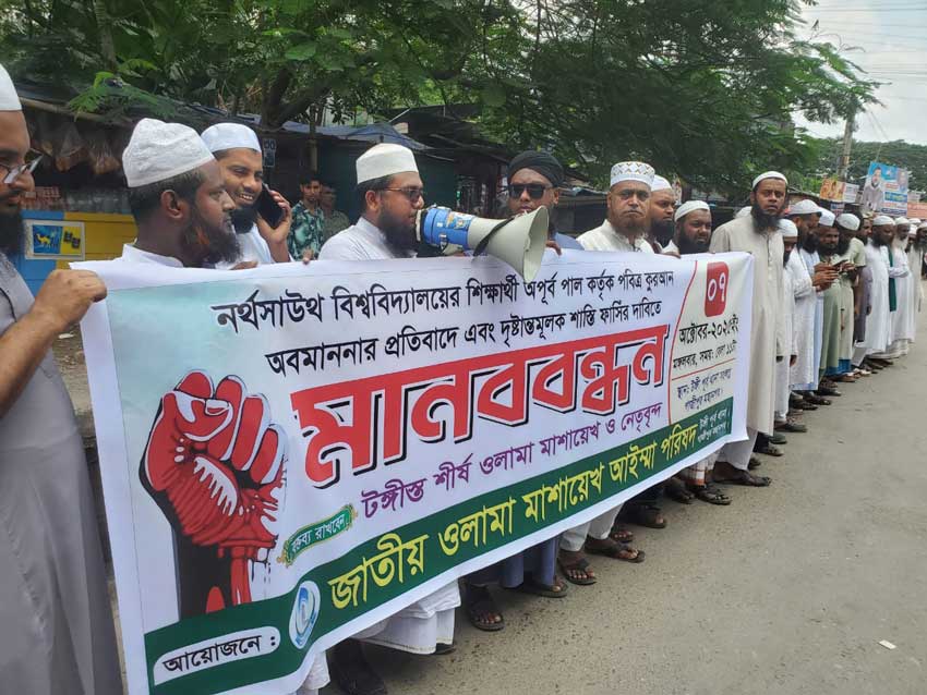 মানববন্ধনে এলাকার বিভিন্ন মসজিদ-মাদ্রাসার শিক্ষক, ছাত্র ও মুসল্লিরা অংশ নেন। এতে বক্তারা বলেন, নরওয়ের অপূর্ব পাল কর্তৃক পবিত্র কুরআন অবমাননা বিশ্বের সকল মুসলমানের হৃদয়ে গভীর আঘাত হেনেছে। তারা অবিলম্বে এই ন্যক্কারজনক ঘটনার দোষীদের দৃষ্টান্তমূলক শাস্তি ও ফাঁসির দাবি জানান।