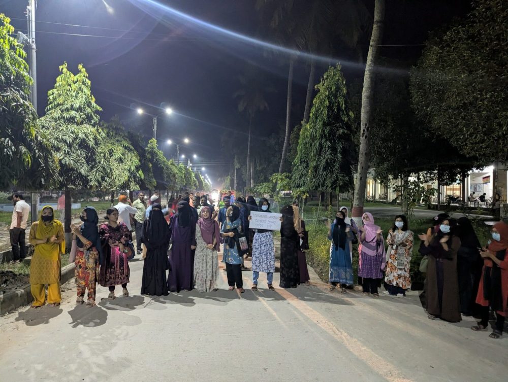 সন্ধ্যায় প্রায় ৩ ঘন্টা সড়ক অবরোধ করে আন্দোলন করেন তারা। সরেজমিনে দেখা যায়, শিক্ষার্থীরা ‘দাবি মোদের একটাই, স্থায়ী হলে আসন চাই’, ‘সিনিয়র হেলথ কেয়ারে, জুনিয়র কেন হলে’ এমন স্লোগান দিতে থাকেন। পরে বিশ্ববিদ্যালয় প্রশাসন রাত সাড়ে নয়টার দিকে তাদের হলে ফিরিয়ে নিয়ে যান।