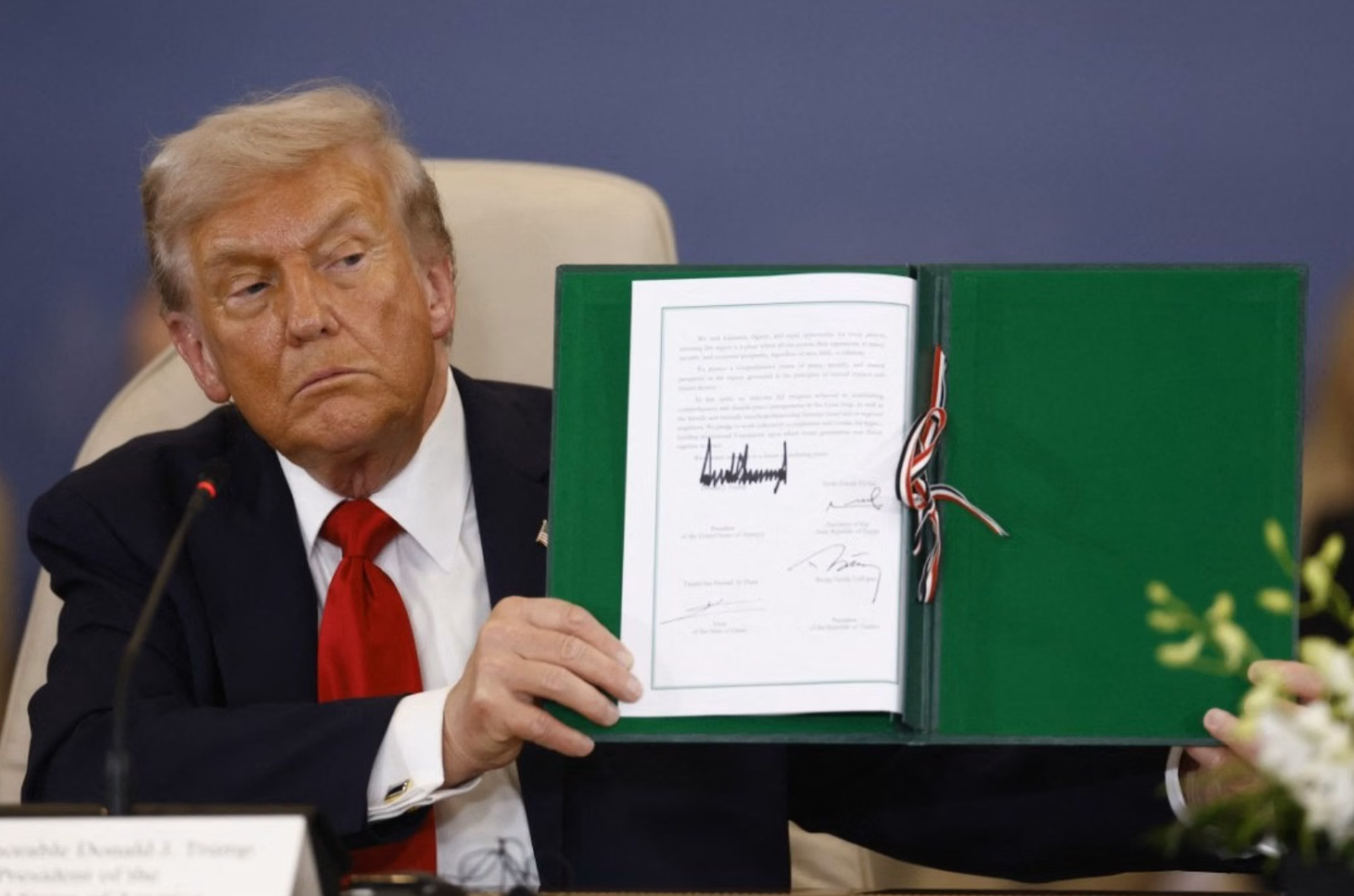 সোমবার মিশরের পর্যটনবান্ধব শহর শার্ম এল-শেখে ‘গাজা শান্তি সম্মেলনে’ যুক্তরাষ্ট্রের প্রেসিডেন্ট ডোনাল্ড ট্রাম্প, মিশরের প্রেসিডেন্ট আবদেল ফাত্তাহ আল-সিসি এবং কাতার ও তুরস্কের নেতারা এই যৌথ ঘোষণায় সই করেন।