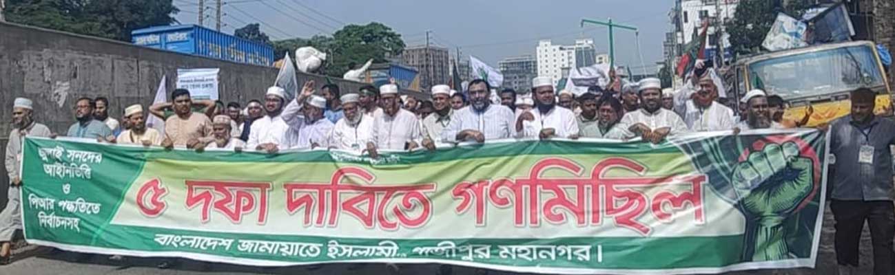গাজীপুর টঙ্গী পূর্ব থানার উদ্যোগে বাংলাদেশ জামায়াতে ইসলামী ৫ দফা দাবিতে এক বিশাল গণমিছিল ও পথসভা আয়োজন করেছে।