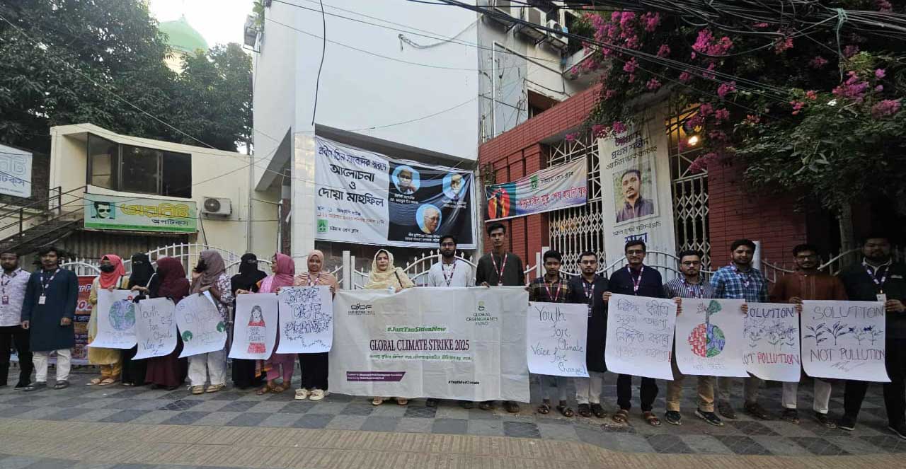 গ্লোবাল ক্লাইমেট স্ট্রাইক ২০২৫-এর অংশ হিসেবে আজ চট্টগ্রাম প্রেস ক্লাবের সামনে মানববন্ধন করে জলবায়ু ন্যায়বিচারের দাবি জানিয়েছে বিভিন্ন শিক্ষা প্রতিষ্ঠানের শিক্ষার্থী ও তরুণ পরিবেশকর্মীরা। বিশ্বব্যাপী তরুণদের জলবায়ু উদ্বেগের সঙ্গে সংহতি প্রকাশ এবং বাংলাদেশের ঝুঁকিপূর্ণ অবস্থান তুলে ধরতেই আয়োজনটি করা হয়। কর্মসূচির নেতৃত্ব দেয় ধ্রুবতারা ইয়ুথ ডেভেলপমেন্ট ফাউন্ডেশন (DYDF)।