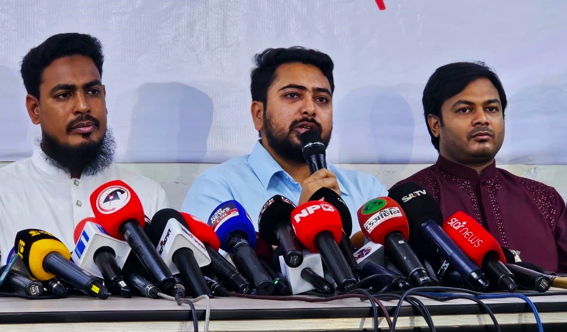 রাজধানীর বাংলামোটরে এনসিপির কেন্দ্রীয় কার্যালয়ে সংবাদ সম্মেলনে বক্তব্য রাখেন দলটির আহ্বায়ক নাহিদ ইসলাম।