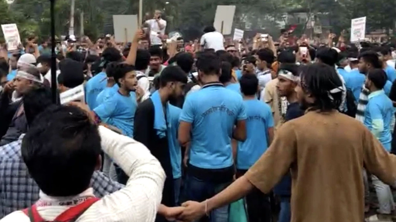 শুক্রবার (১৭ অক্টোবর) বিকেলে সংসদ ভবনের খামারবাড়ি এলাকায় তারা এ স্লোগান দেন।