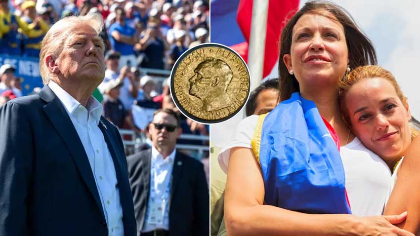 ২০২৫ সালে শান্তিতে নোবেল পুরস্কার জিতেছেন ভেনেজুয়েলার বিরোধীদলীয় নেতা মারিয়া কোরিনা মাচাদো। দেশে স্বৈরতন্ত্রের বিরুদ্ধে লড়াই এবং গণতন্ত্র প্রতিষ্ঠায় গুরুত্বপূর্ণ ভূমিকা রাখার স্বীকৃতি হিসেবে এই পুরস্কার জিতেছেন তিনি। তবে এ পুরস্কার মার্কিন প্রেসিডেন্ট ডোনাল্ড ট্রাম্পকে উৎসর্গ করেছেন তিনি।
