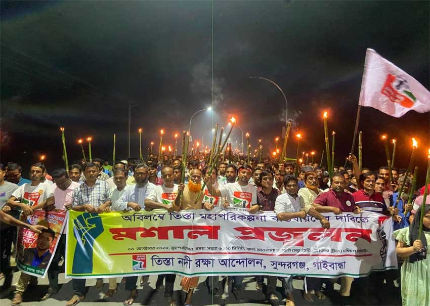 তিস্তা মহাপরিকল্পনা বাস্তবায়নের দাবিতে সুন্দরগঞ্জে মশাল প্রজ্বলন