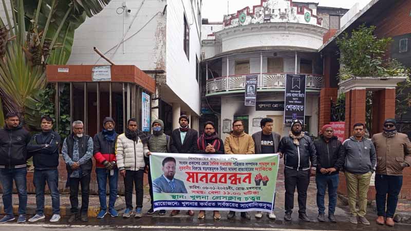 নওরোজ সম্পাদকের বিরুদ্ধে মিথ্যা মামলা প্রত্যাহারের দাবিতে খুলনায় মানববন্ধন