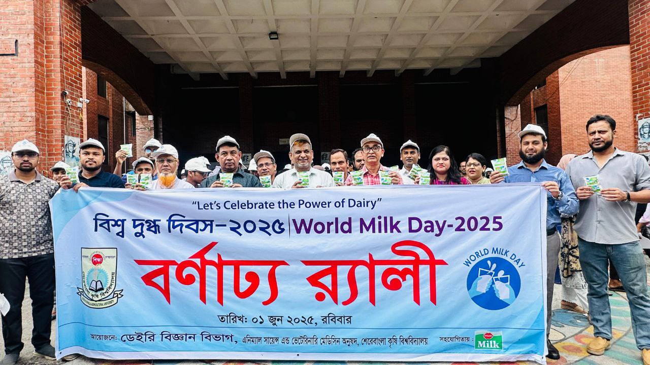 “আসুন দুগ্ধশিল্প এবং দুধের প্রভাব উদযাপন করি” এ প্রতিপাদ্যকে সামনে রেখে সারাবিশ্বের ন্যায় শেরেবাংলা কৃষি বিশ্ববিদ্যালয়ে বিশ্ব দুগ্ধ দিবস-২০২৫ উদযাপিত হয়েছে।