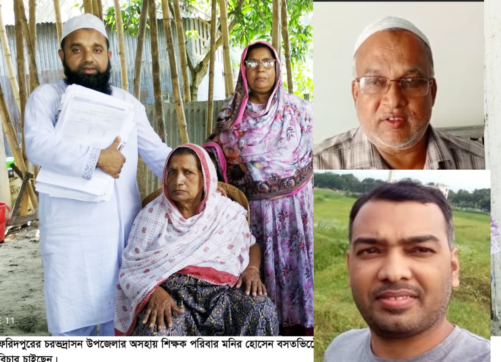 ফরিদপুরের চরভদ্রাসনে এক প্রভাবশালী প্রতিবেশীর জবর দখলের চেষ্টার শিকার হয়েছেন স্থানীয় এক প্রাথমিক বিদ্যালয়ের শিক্ষক মনির হোসেন। তার ২৫ বছরের পুরোনো পৈত্রিক বসতভিটে দখল করতে মরিয়া হয়ে উঠেছেন মোঃ আলতাফ হোসেন নামের ওই ব্যক্তি।