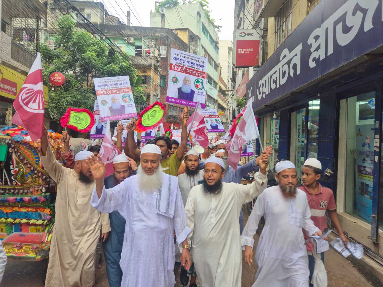 মঙ্গলবার বংশাল এলাকায় নির্বাচনী গণসংযোগ করেন ঢাকা-৭ আসন থেকে ইসলামী আন্দোলন বাংলাদেশের মনোনীত প্রার্থী আলহাজ্ব আব্দুর রহমান।