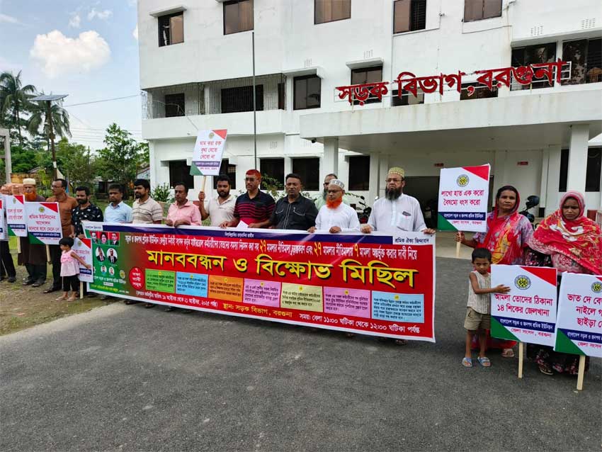 বরগুনায় সওজ’র সাত দফা দাবিতে মানববন্ধন ও বিক্ষোভ মিছিল অনুষ্ঠিত