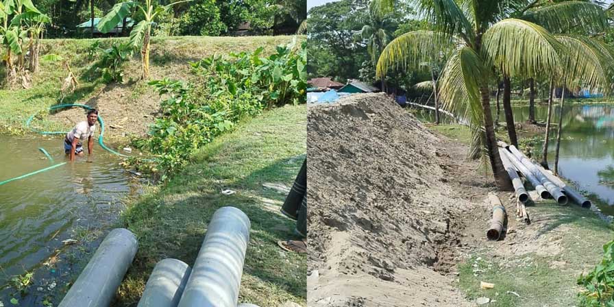 বেড়িবাঁধ কেটে পাইপ স্থাপনের চেষ্টা, এলাকাবাসীর প্রতিরোধ