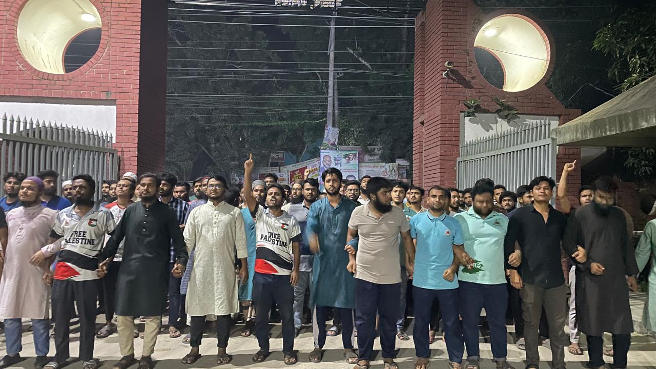 শুক্রবার রাত ১০টার দিকে আব্দুল মান্নান হলের সামনে থেকে বিক্ষোভ মিছিল শুরু করে শিক্ষার্থীরা। র্যালিটি ক্যাম্পাসের প্রধান সড়কগুলো প্রদক্ষিণ করে বিশ্ববিদ্যালয়ের ১২ তলা ভবনের সামনে সমাবেশে মিলিত হয়।