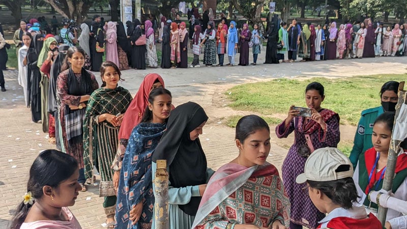 রাকসু নির্বাচনে ভোটারদের উৎসবমুখর ভিড়