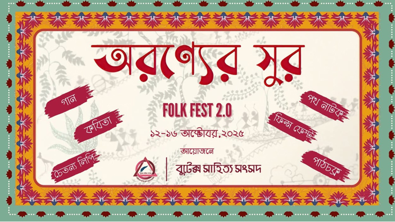 বাংলাদেশ টেক্সটাইল বিশ্ববিদ্যালয় (বুটেক্স) প্রাঙ্গণে বুটেক্স সাহিত্য সংসদের আয়োজনে শুরু হলো পাঁচ দিনব্যাপী বর্ণাঢ্য সাংস্কৃতিক উৎসব ‘অরণ্যের সুর- ফোক ফেস্ট ২.০’। বর্ণিল এই উৎসবটি আজ রোববার থেকে শুরু হয়ে ১৬ অক্টোবর পর্যন্ত চলবে। পাঁচ দিনব্যাপী এই উৎসবের বিস্তৃত অনুষ্ঠানসূচি ঘোষণা করা হয়েছে, যেখানে সাহিত্য, নাটক, চলচ্চিত্র এবং সংগীতসহ বিভিন্ন সাংস্কৃতিক পরিবেশনা অন্তর্ভুক্ত রয়েছে।
