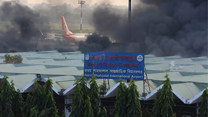 বেলা আড়াইটার দিকে বিমানবন্দরের কার্গো ভিলেজে (পণ্য রাখার স্থান) আগুন লাগে। কার্গো ভিলেজের যে অংশে আগুন লেগেছে সেখানে আমদানি করা পণ্য মজুত রাখা হয়।কার্গো ভিলেজের বাইরে উৎসুক জনতার ভিড় দেখা গেছে। বিমানবাহিনীর পক্ষ থেকে মাইকিং করে উৎসুক জনতাকে সরে যেতে বলা হচ্ছে। কার্গো ভিলেজ ভবন থেকে অনেক ধোঁয়া বের হতে দেখা গেছে।