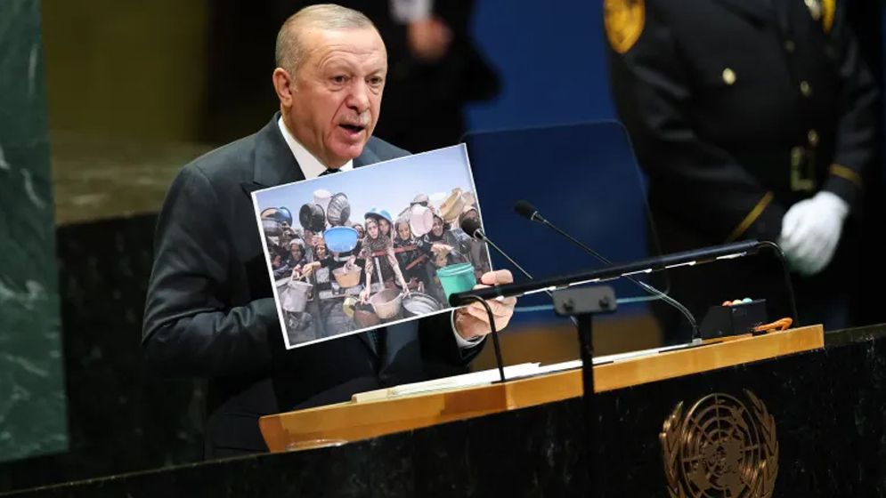 জাতিসংঘে গাজায় ক্ষুধার্তদের ছবি প্রদর্শন করলেন এরদোয়ান