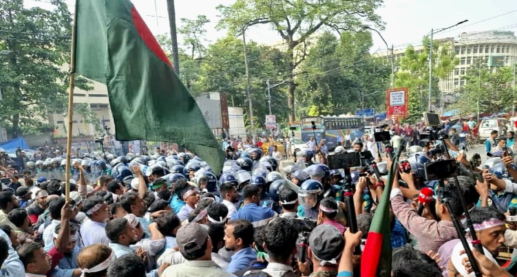 পুলিশের বাধা উপেক্ষা করে শাহবাগ অবরোধ শিক্ষকদের, বন্ধ যান চলাচল