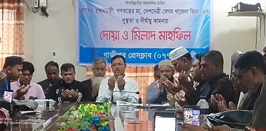 গাজীপুর প্রেসক্লাবের উদ্যোগে বেগম জিয়ার রোগমুক্তি কামনায় দোয়া ও মিলাদ মাহফিল