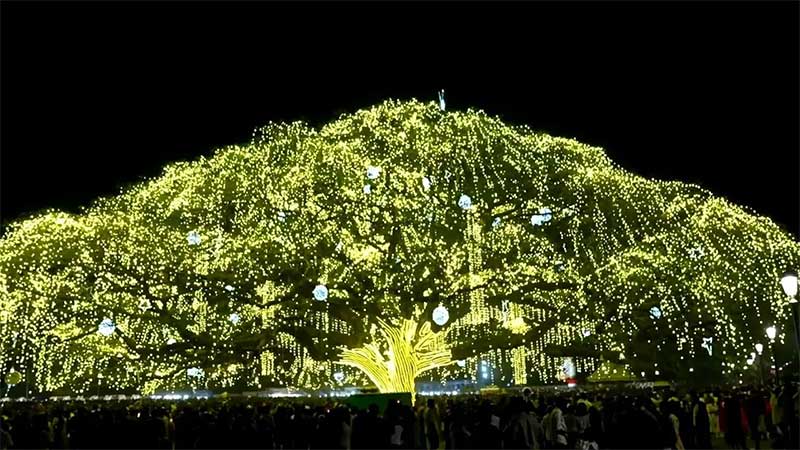 ৮০ ফুট উঁচু ক্রিসমাস ট্রি দেখতে দর্শনার্থীদের উপচে পড়া ভিড়
