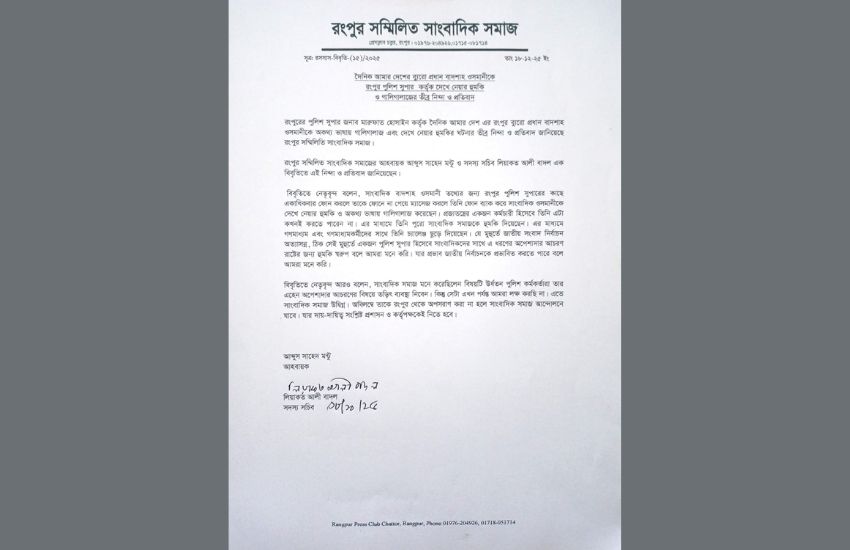 দৈনিক আমার দেশ-এর রংপুর ব্যুরো প্রধান বাদশাহ ওসমানীকে গালিগালাজ ও হুমকির ঘটনায় রংপুর সম্মিলিত সাংবাদিক সমাজের তীব্র নিন্দা ও প্রতিবাদ