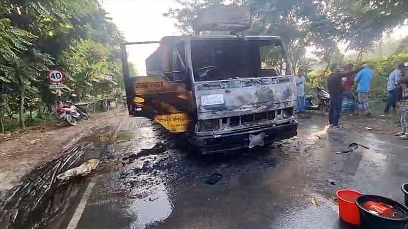 ঢাকা-ভাঙ্গা এক্সপ্রেসওয়ে অবরোধ, ট্রাকে আগুন