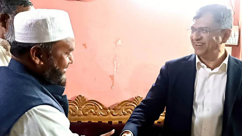 ভোটের প্রচার শেষে প্রতিদ্বন্দ্বী জামায়াত প্রার্থীর বাড়িতে সালাহউদ্দিন