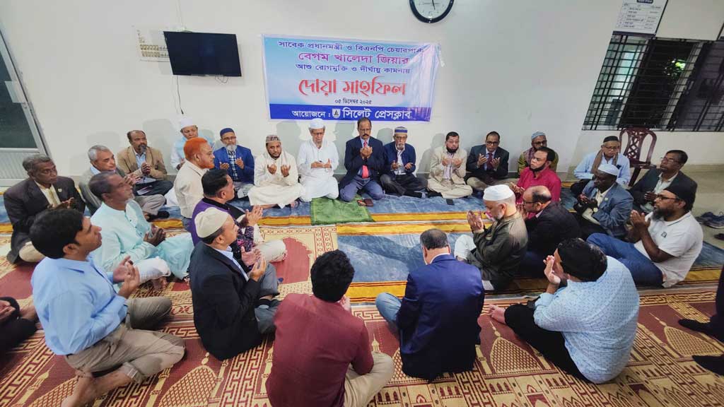 খালেদা জিয়ার রোগমুক্তি ও দীর্ঘায়ু কামনায় সিলেট প্রেসক্লাবে দোয়া মাহফিল