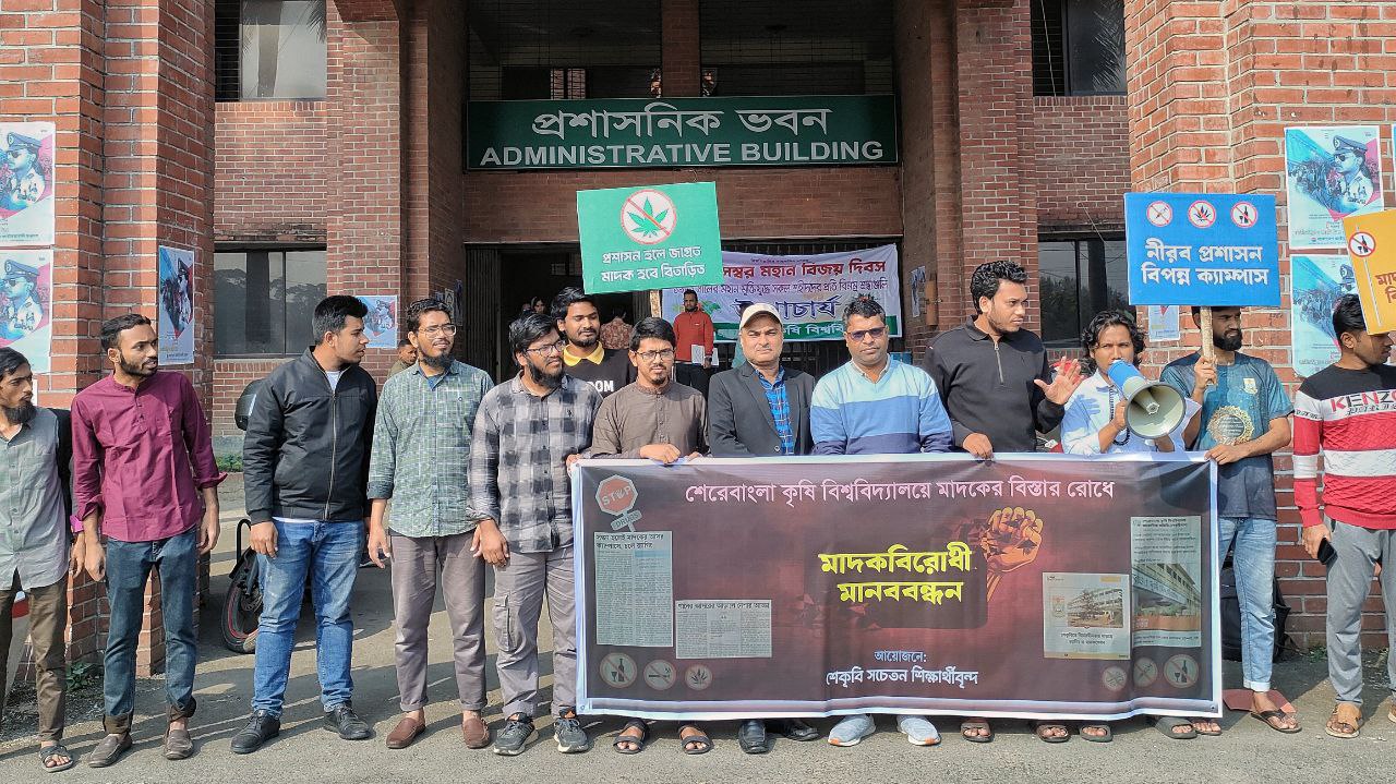 মাদকের বিস্তার রোধে শেকৃবি শিক্ষার্থীদের মানববন্ধন