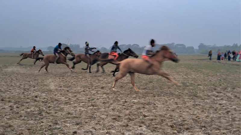 কটিয়াদীতে ঐতিহ্যবাহী ঘোড়দৌড় দেখতে হাজারো মানুষের ভিড়
