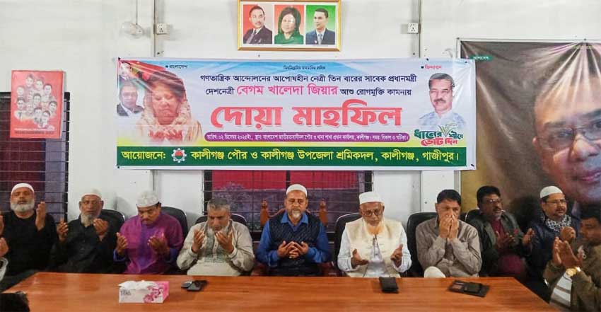 কালীগঞ্জে খালেদা জিয়ার সুস্থতা কামনায় শ্রমিক দলের দোয়া মাহফিল