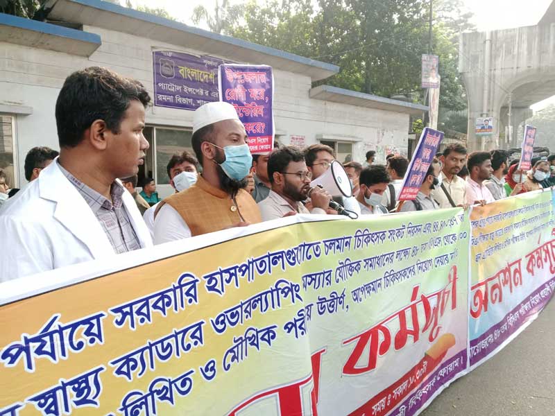 জবি অধ্যাপকের উপর স্থানীয় চেয়ারম্যানের হামলার প্রতিবাদে মানববন্ধন